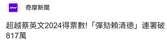 台湾时事评论员王炳忠介绍,国民党和民众党19日宣布对赖清德发起弹劾。同日,多位岛内意见领袖发起网络联署活动,已经超过689万次联署目标,这一数字是蔡英文第一任期的当选得票数。这意味着,当选得票数本就不过半的赖清德,如今还失去了民进党原本的支持者。