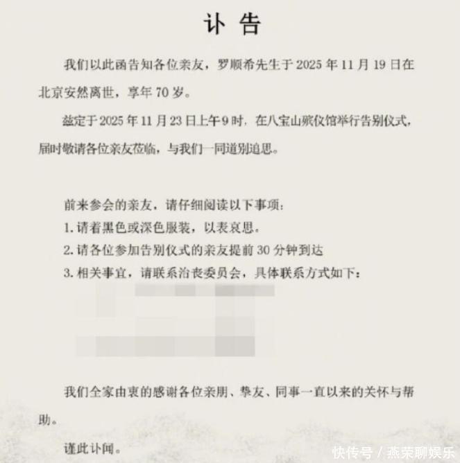 原来罗先生的父亲在19号这天离世了,老爷子才70岁而且身子骨看起来挺硬朗的,突然离世属实让人意想不到,罗先生有多伤心可想而知,连讣告都是助理代替发出的,现在才明白他为什么这么久不更新动态也不回应传闻。